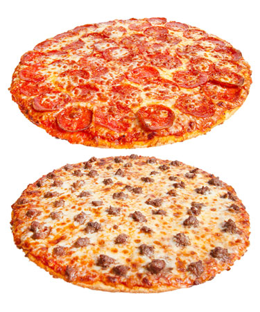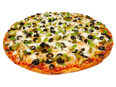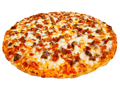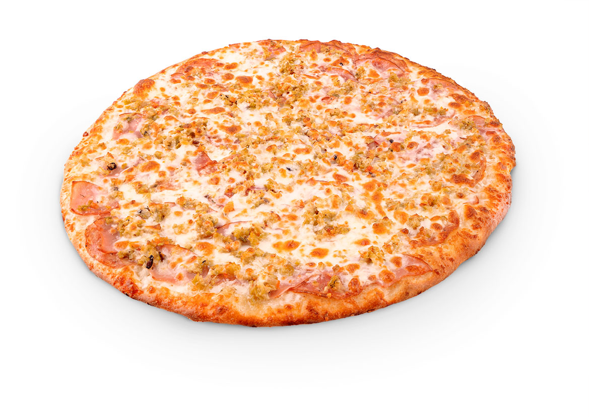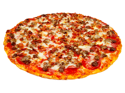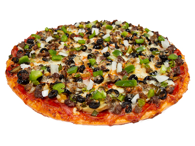 A Legendary combination of 11 ingredients. Generous helpings of pepperoni, ham, hamburger, sausage, onions, mushrooms, black olives, bell peppers, jalapeños, anchovies, all crowned with 100% real mozzarella cheese! Pick Up or Dine In Only between 11am and 4pm.