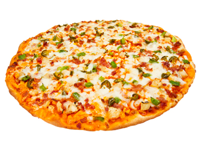 Tender chicken, onions, bell peppers, jalapeños, real bacon and 100% mozzarella cheese, plus your choice of 3 sauces: tangy ranch, spicy buffalo or sweet BBQ!