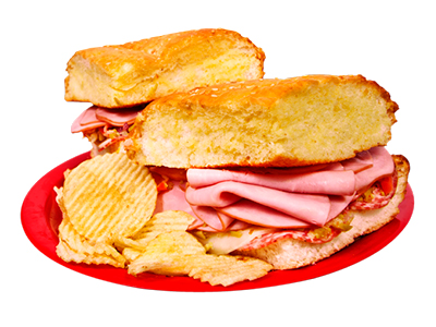 A hot buttery sesame seed bun with ham, spicy salami, melted provolone cheese, olive mix and mustard. Includes chips! Pick Up or Dine In Only between 11am and 4pm.